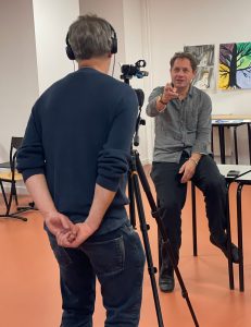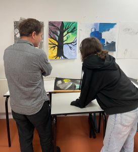 En fin de séance, Ron Dyens a pris le temps d’observer et de commenter les productions en cours des élèves, centrées sur les notions de figuration et de narration, offrant ainsi un retour professionnel particulièrement formateur et stimulant